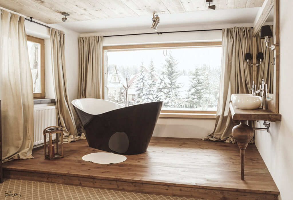 Każdy detal ma znaczenie – od wysokiej jakości pościeli i miękkich pledów po designerskie meble i subtelne oświetlenie, które buduje nastrojowy klimat. Wieczory można spędzać przy kominku z kieliszkiem grzanego wina, wsłuchując się w trzask płonącego drewna. Dla miłośników relaksu przygotowano spa z sauną i jacuzzi, z którego można podziwiać ośnieżone szczyty.
